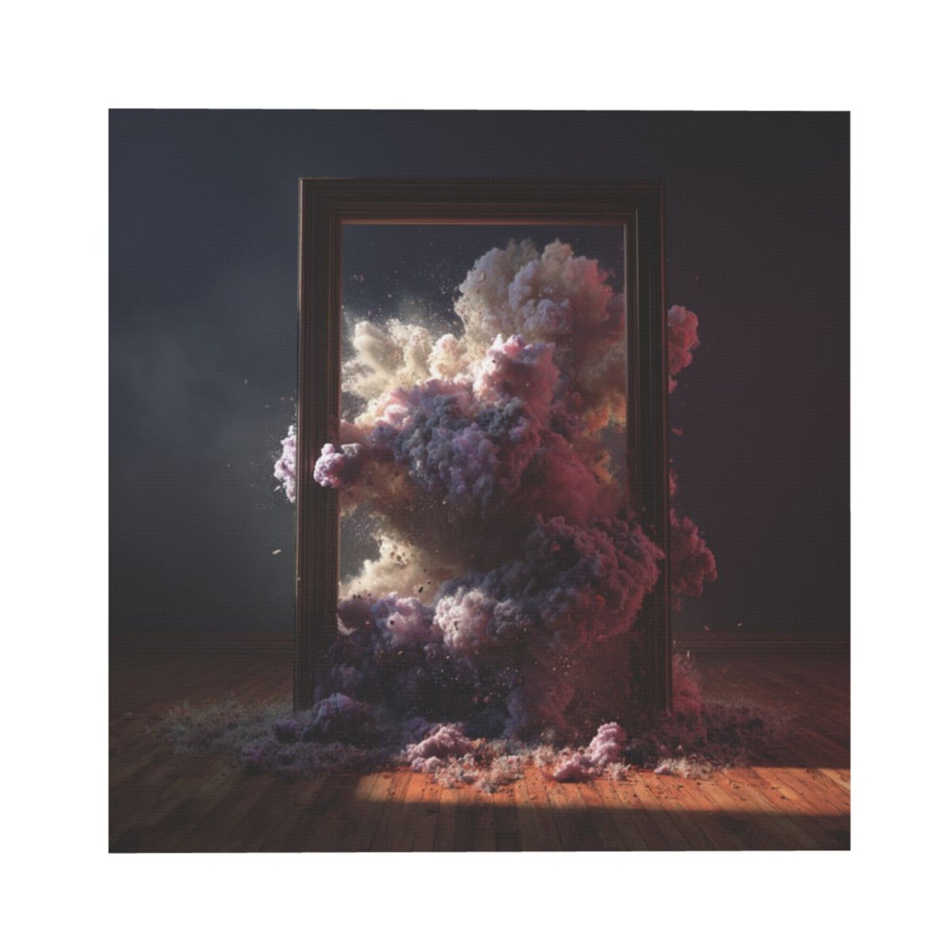 This dreamlike cloud energy wall art canvas features a surreal scene where a classical frame overflows with billowing clouds and radiant energy, blurring the line between art and reality. The dynamic interplay of light, mist, and texture creates a powerful visual impact, offering a sense of mystery and imagination. With its bold and modern aesthetic, this artwork is perfect for those seeking unique and artistic décor.